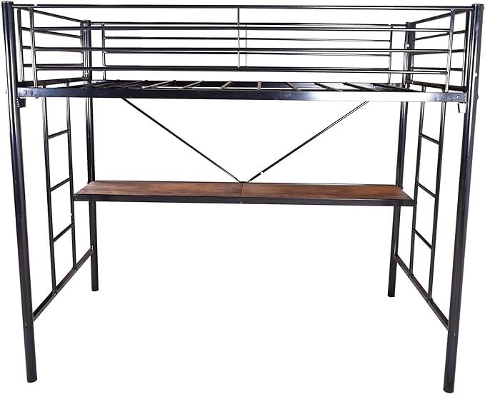Metal Twin Loft Bed, Space-Saving Loft Bed Frame, Both Side Ladders