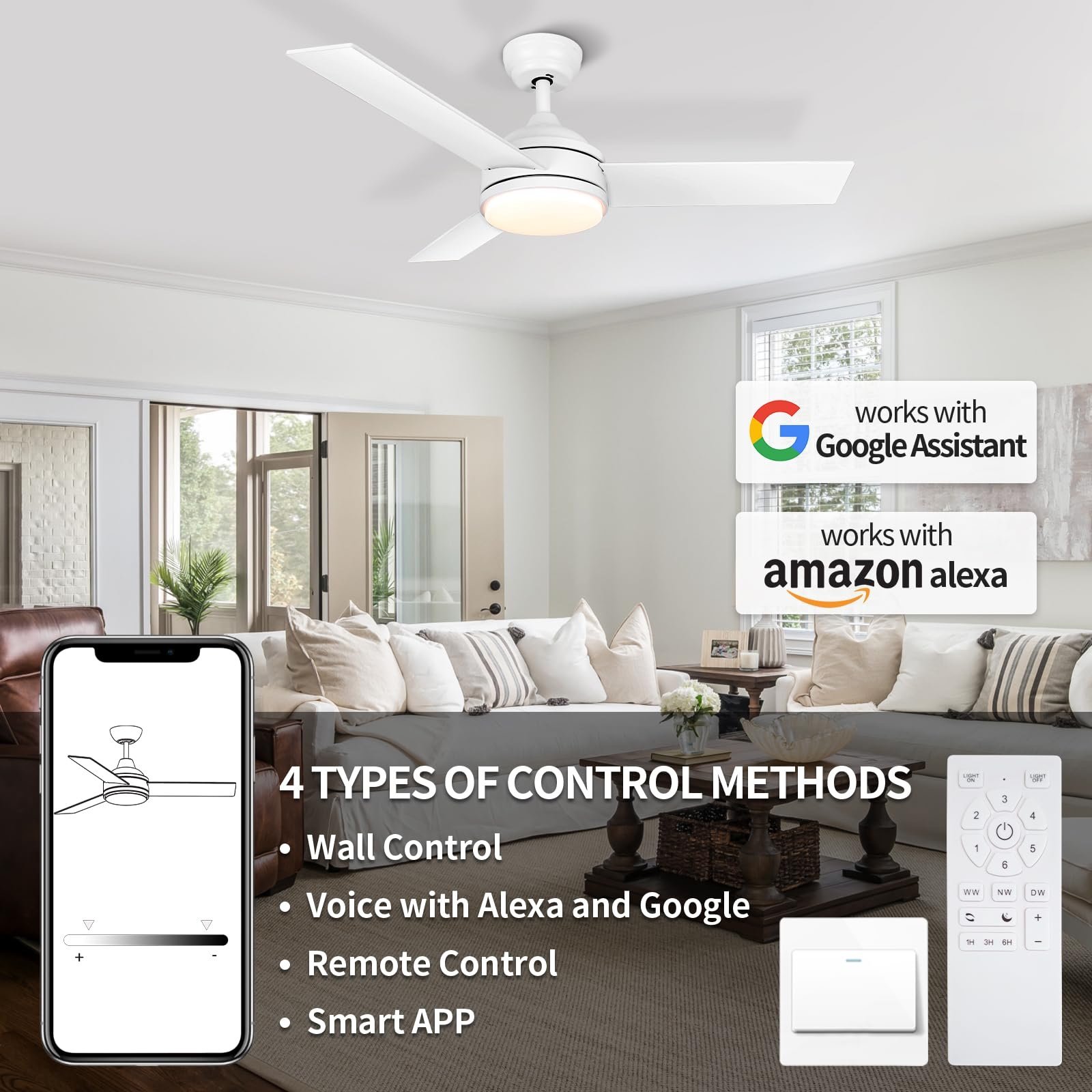 Viossn 42″ Smart Noiseless Ceiling Fan w/ Lights & Alexa