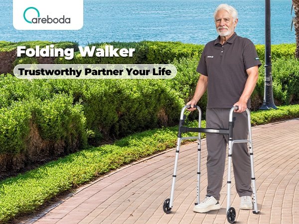 Careboda Folding Walker for Seniors, Lightweight Walker with Front Wheels