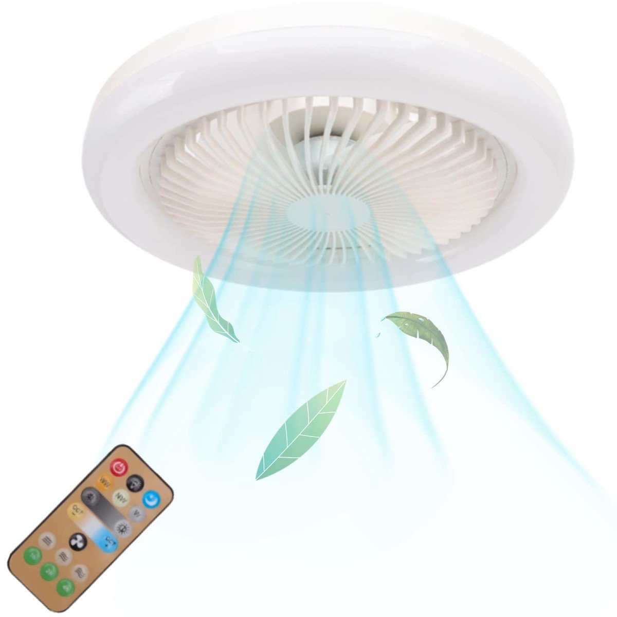 Rosvola Socket Fan Ceiling Fan w/ Light & Remote, 36w, 9.8″