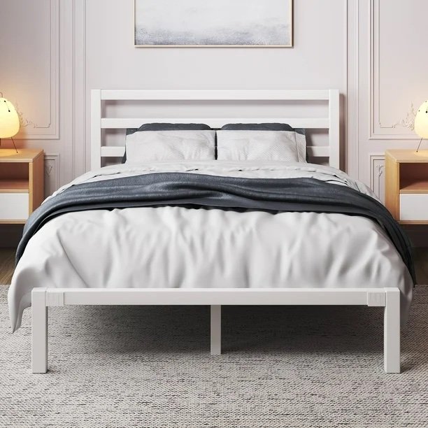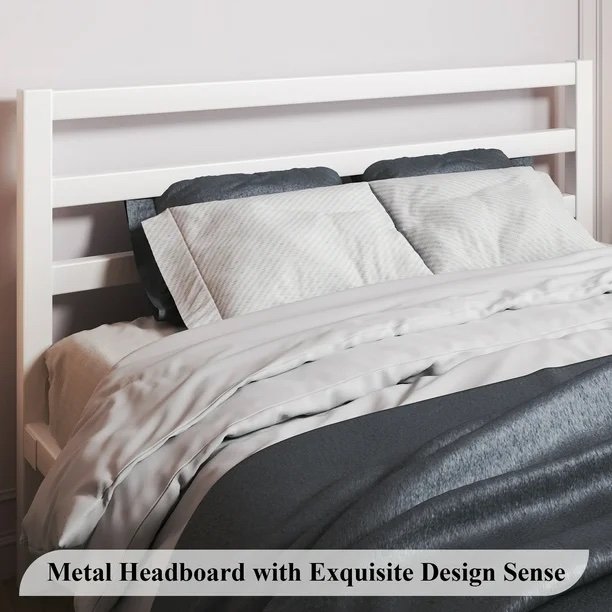 Full Size White Metal Bed Frame with Headboard