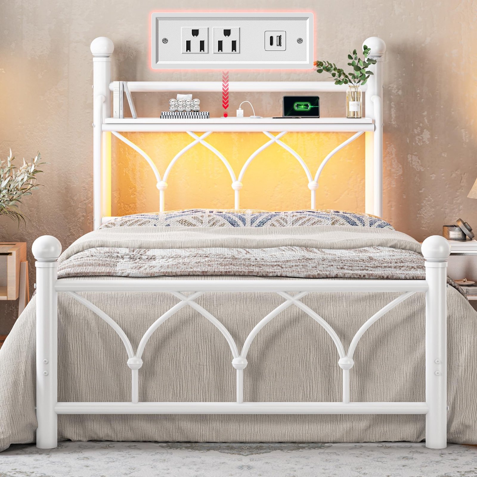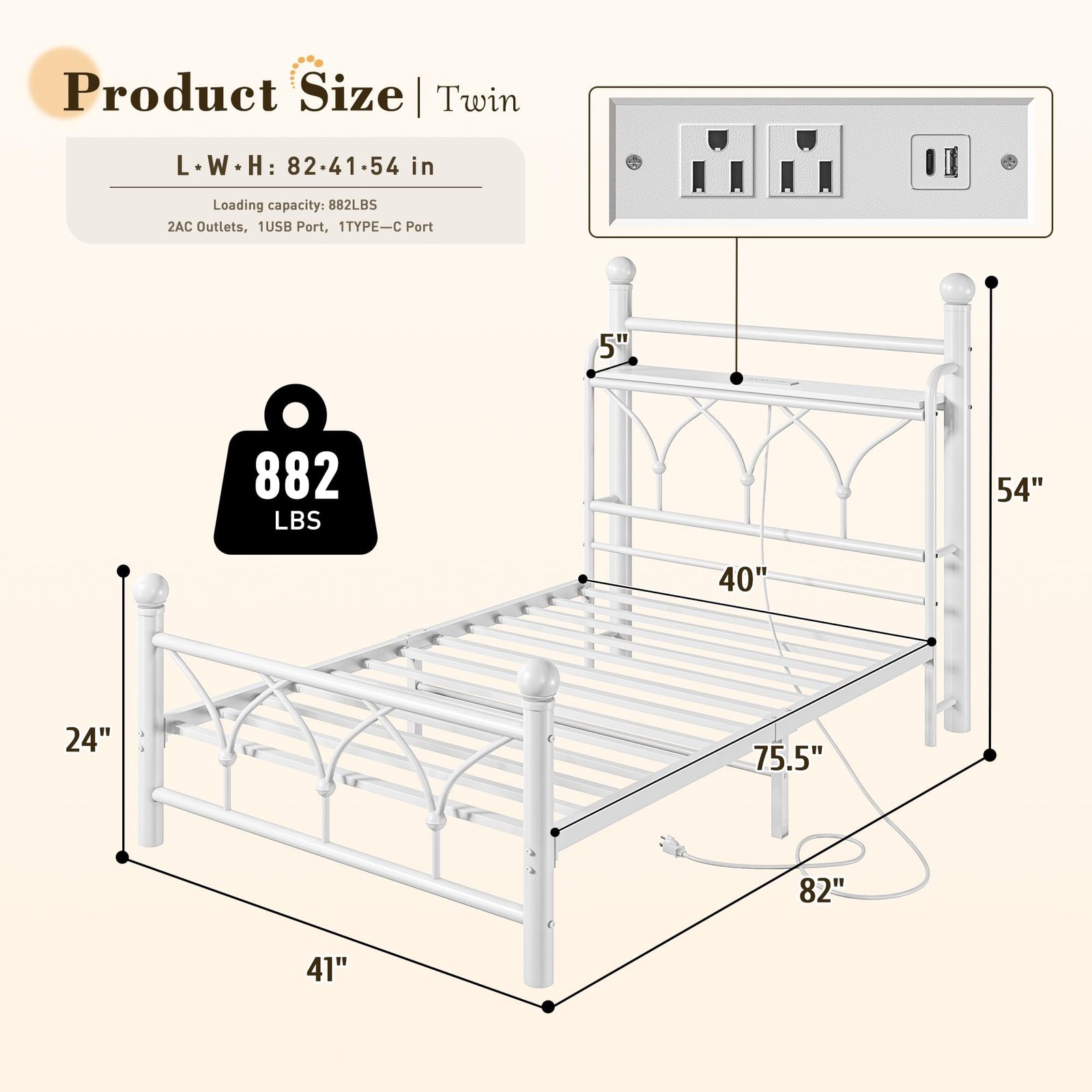 EnHomee – Single Bed Frame with Headboard, Twin Size